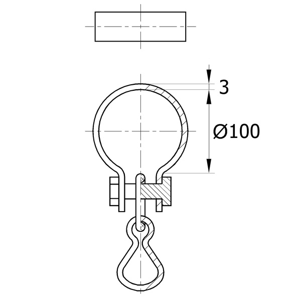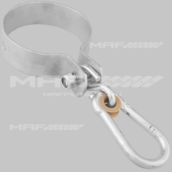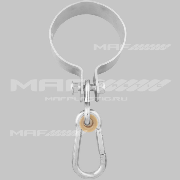 Крепёж для подвесных качелей на круглый профиль. Диаметр – 100 мм, толщина обхвата – 3 мм.